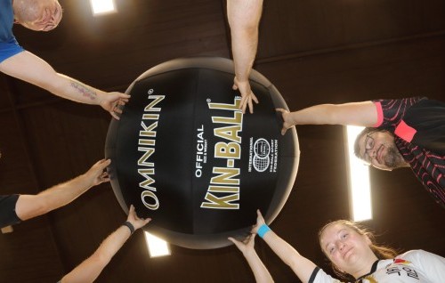 Die gesamte Halle dient als Spielfeld ( höchstens 21m x 21m ). Man benötigt also kein Netz oder Tor um Kin Ball zu spielen.